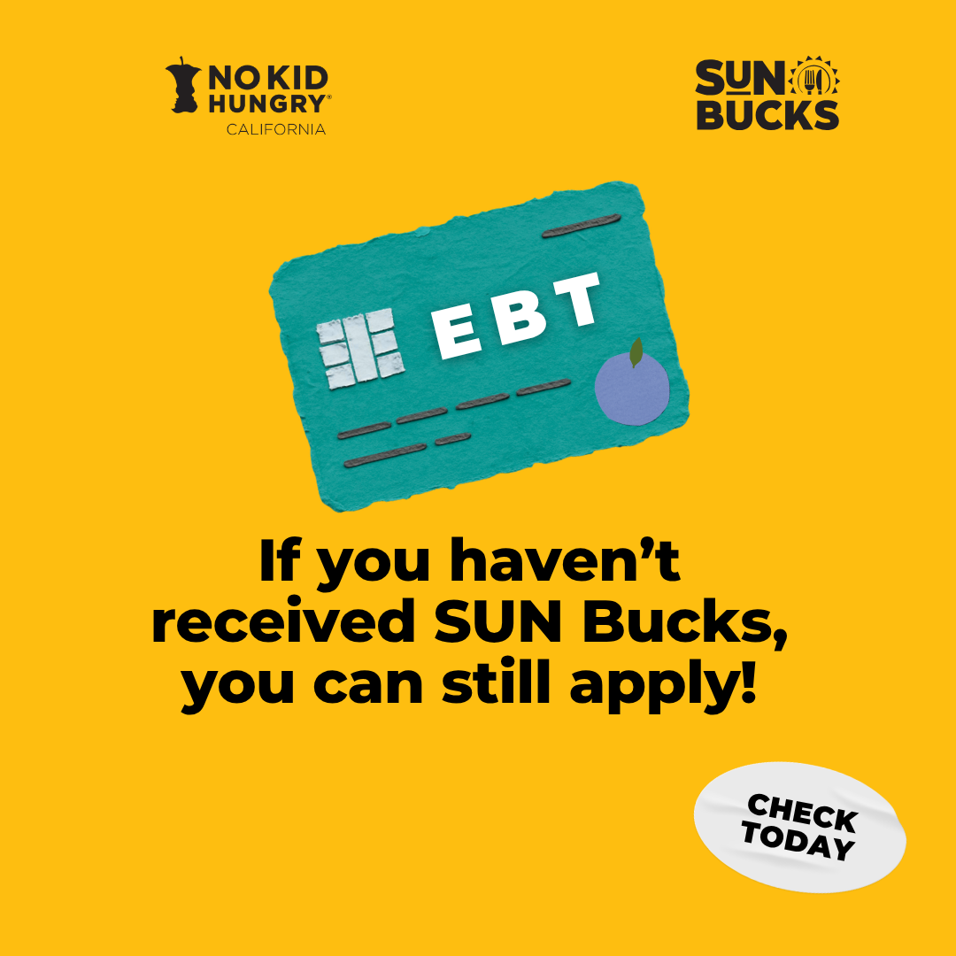 SUN Bucks & Summer Meals work together to help support families across CA get the healthy food that kids normally get at school. 🍎Remember to use your SUN Bucks for grocery support. If you didn’t receive SUN Bucks, you can check your eligibility at summerebt.org/states/california