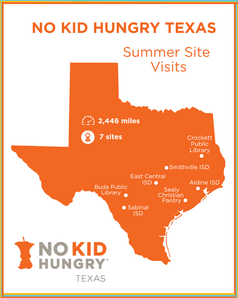 This summer, the No Kid Hungry Texas team once again hit the road to see firsthand the incredible work happening in communities across our state to keep kids nourished. From joyful kickoff events to long rural delivery routes, we witnessed the dedication, creativity, and heart that fuel summer meal programs in Texas. As part of these efforts, we supported 10 organizations with almost $300,000 in grant funding, helping them expand flexible summer meal programs and reach more kids when school is out.
